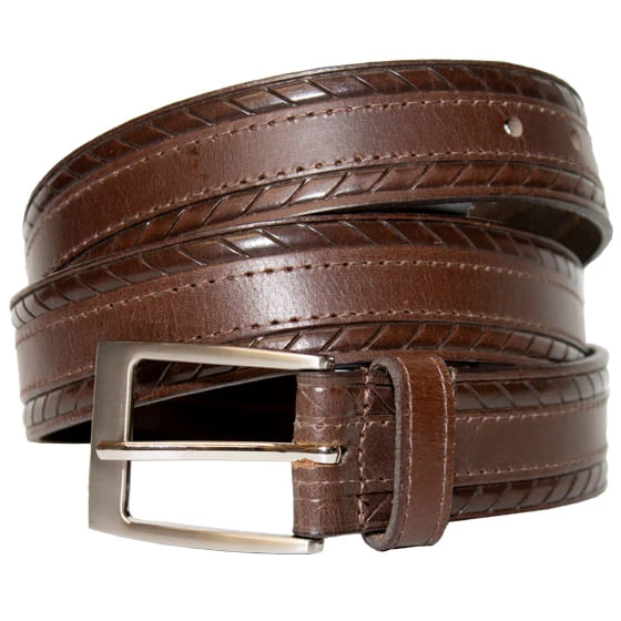 Keldon Embossed Edge Centre Stitch Leather Belt – Brown