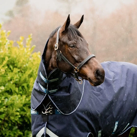 Duo Ripstop material and construction in a color coordinating neck cover to keep your horse extra warm.